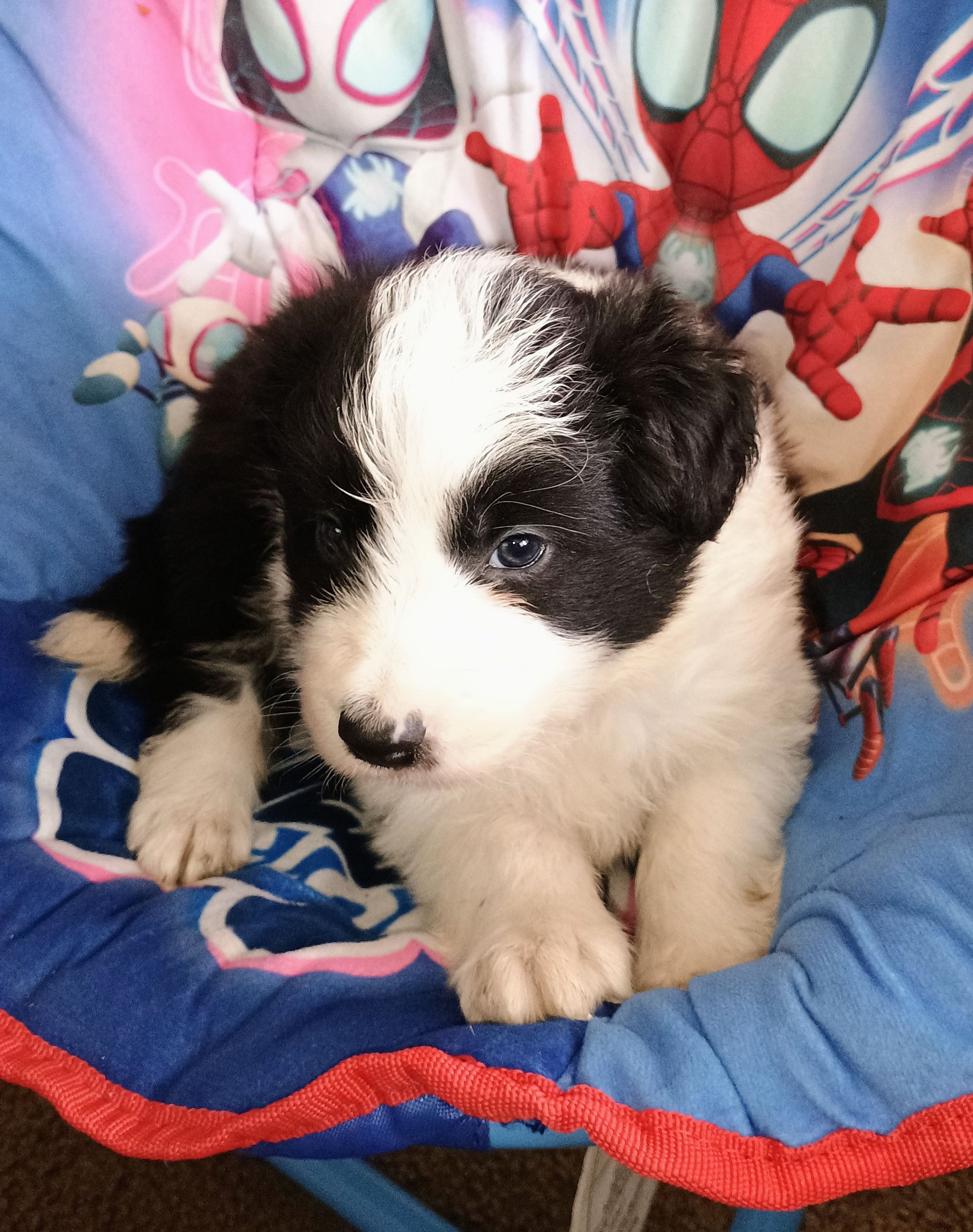 Ready to go! Vet checked. Available colors: Black and White and Blue Merle. AKC Limited Registration. Our dogs are medium Rough coat. Male and female available and ready to go! Very people orientated and out going. Our puppies will have been vet checked, current on shots and worming, crate and house training started. Socialization with children, cats and other dogs. Our dogs have an off/on energy personally. This makes them great family companions and will still do good at agility, confirmation, OB, herding, etc..